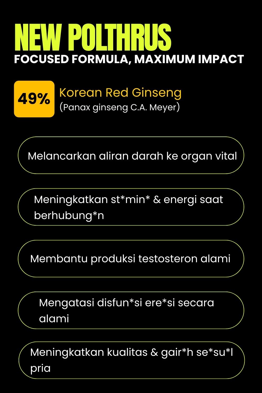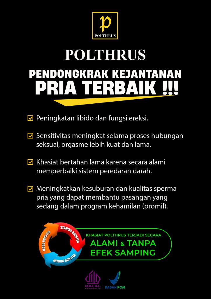Kini kandungan suplemen rahasia tersebut telah hadir di Indonesia dengan nama POLTHRUS. POLTHRUS adalah SUPLEMEN STAMINA PRIA yang mengandung semua komposisi bahan tersebut, dirancang khusus untuk membantu pria tampil prima dan tahan lama. Dengan mengkonsumsi POLTHRUS, setiap pria bisa merasakan manfaat dari MOOD BOOSTER, STAMINA BOOSTER, IMMUNE BOOSTER, dan STIMULAN LIBIDO, sama seperti para aktor film dewasa ternama.